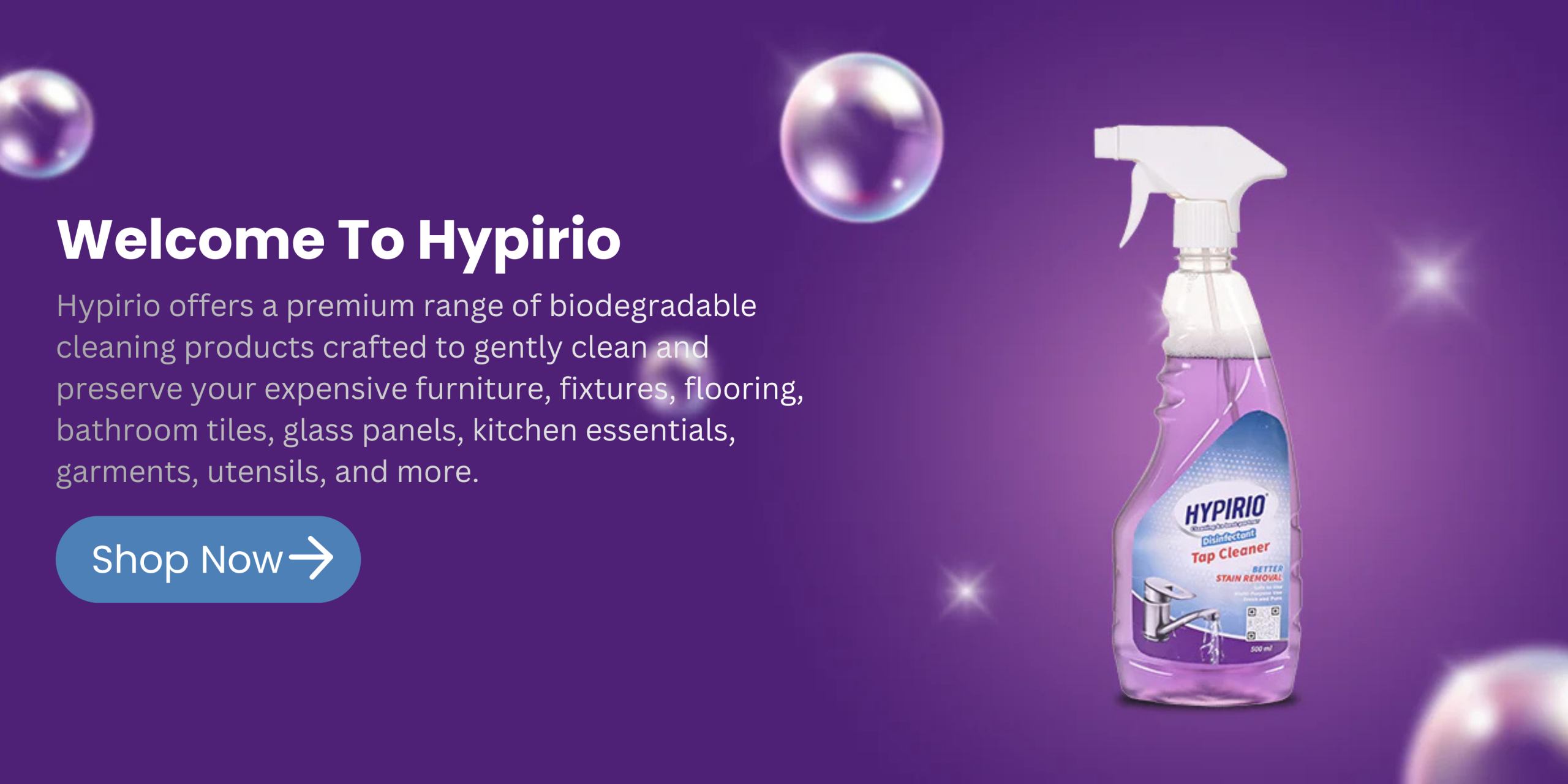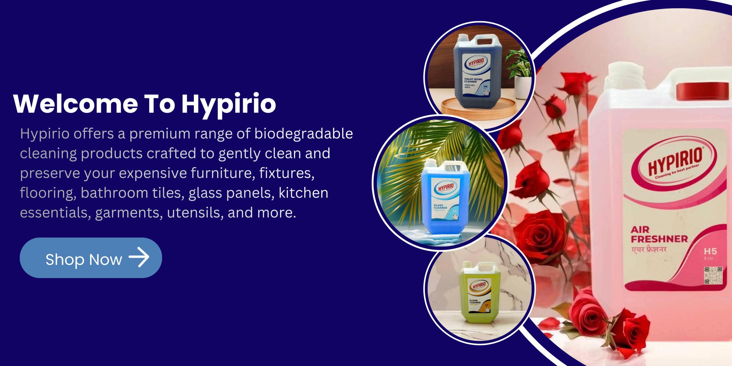 Hypirio India is dedicated to redefining cleanliness through innovation, safety, and uncompromised quality. Our mission is to provide advanced cleaning solutions that protect people, surfaces, and the environment without exposing them to harmful chemicals. With years of manufacturing expertise, Hypirio has mastered the art of producing highly effective, non-toxic, and eco-friendly cleaning products that deliver professional-grade results.